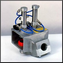 | Die Mischweiche "vp" wird verwendet, wenn zwei unterschiedliche Materialien angesaugt und verarbeitet werden sollen, wie z.B. Neuware aus einem Vorratsbehälter und Mahlgut aus einer Mühle. Die Programmierung der Saugzeit wird über die Steuerung des Saugförders für jede Saugleitung individuell eingestellt. | |
