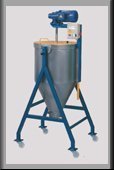 Die Mischerschnecke ist ebenfalls aus Edelstahl und wird durch einen 0,75kW Getriebemotor angetrieben. Bereits eine kurze Mischzeit von 5 - 8 Minuten sind in der Regel für eine homogene Mischung völlig ausreichend. Ein Überlastrelais dient als Schutz vor Motorschaden bei Überlastung.