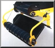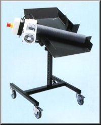 Eine etwas teurere aber dafür flexibler einsetzbare Möglichkeit der Separierung ist das mobile Gerät "TRANSMATIC SEP". Diese Rollenseparierung hat einen eigenen Motor und ist auf einem fahrbaren Gestell montiert, so daß es jederzeit an das Förderband gefahren werden kann, wo gerade ein Separiereinsatz erforderlich ist. Der 400V Drehstrommotor hat 0,04kW und dreht sich mit 90Upm. Ohne Werkzeug kann sowohl die Neigung der Rutsche bis zu 75° als auch der Höhenabstand der Rolle bis zu 70mm, ganz dem Bedarf entsprechend, eingestellt werden. |